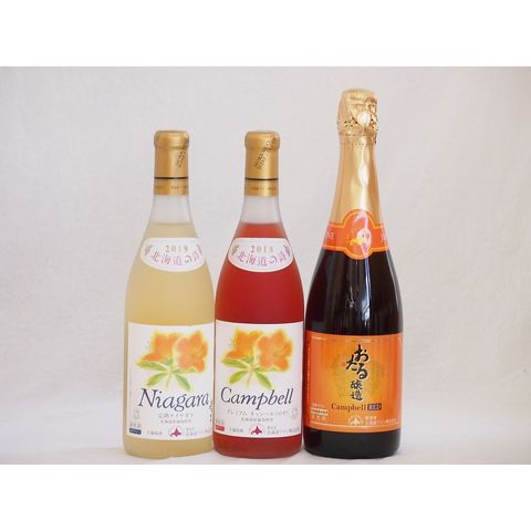 おたるワイン3本セット(キャンベルスパークリング赤ワインやや甘口 プレミアムキャンベルロゼワイン甘口 完熟ナイアガラ白ワイン甘口) 720ml×3本