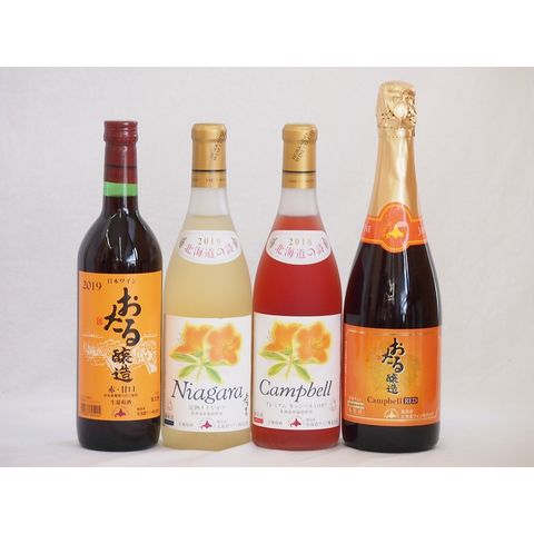 おたるワイン4本セット(キャンベルスパークリング赤ワインやや甘口 プレミアムキャンベルロゼワイン甘口 完熟ナイアガラ白ワイン甘口 赤ワイン生葡萄酒 甘口) 720ml×4本