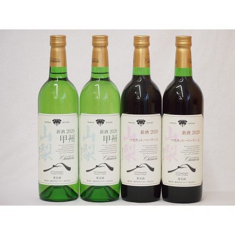 山梨県産100%ワイン4本セット(山梨県産甲州種ぶどう白ワイン(やわらかな辛口) 山梨県産マスカット・ベーリーA赤ワイン(中重口))750ml×4