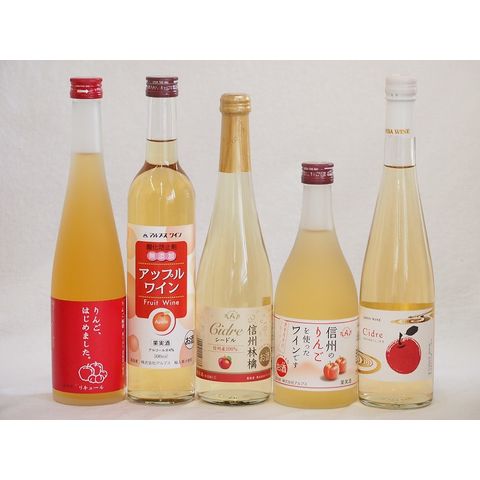 りんご酒5本セット(青森弘前市産シードル 信州林檎シードル りんごはじめましたりんご梅酒 アップルワイン 信州のりんごワイン) 500ml×5本