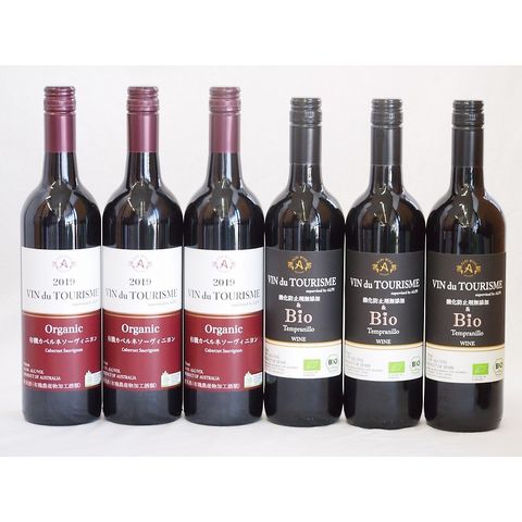 有機ワイン6本セット(ヴァン ドゥ ツーリズム カベルネソーヴィニヨン ミディアム(オーストラリア) テンプラリーニョ種ヴァンドゥツーリズム辛口(スペイン)) 750ml×6本