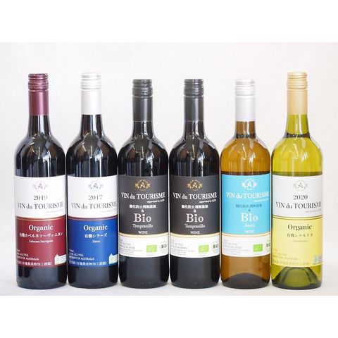有機ワイン6本セット(アイレン種ヴァンドゥツーリズム辛口(スペイン) ヴァン ドゥ ツーリズム カベルネソーヴィニヨン ミディアム(オーストラリア) ヴァン ドゥ ツーリズム シャルドネ辛口(オーストラリア) ヴァン ドゥ ツーリズム シラーズ ミディア