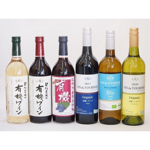 有機ワイン6本セット(あずさ赤ワイン中口 コンコード種赤ワインやや甘口 ナイアガラ種白ワインやや甘口 アイレン種ヴァンドゥツーリズム辛口(スペイン) ヴァン ドゥ ツーリズム シャルドネ辛口(オーストラリア) ヴァン ドゥ ツーリズム シラーズ ミディアム(オーストラリア)) 720ml×3本 750ml×3本