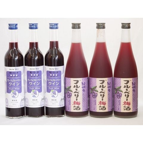 リキュール特集6本セット(グレープ&ブルーベリーワイン 紀州ブルーベリー梅酒) 500ml×3本 720ml×3本