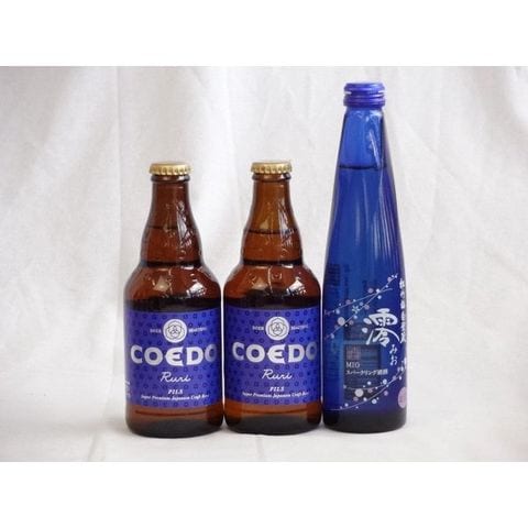クラフトビールパーティ3本セット コエドRuri333ml×2 日本酒スパークリング清酒(澪300ml)