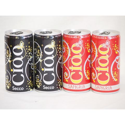 飲みきりイタリアワイン缶4本セット(チャオ サングリア やや甘口微発泡赤ワイン チャオ ビアンコ 辛口微発泡白ワイン) 200ml×4本