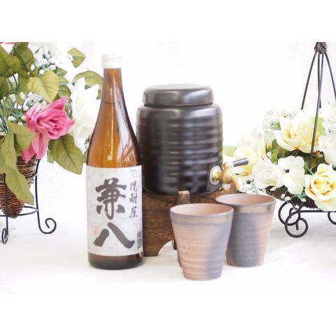 本格焼酎サーバー1000cc(18cm×24cm 1kg)萬古焼きペアカップ付セット(大分県四ツ谷酒造 兼八 25度 720ml) 焼酎サーバー説明書付