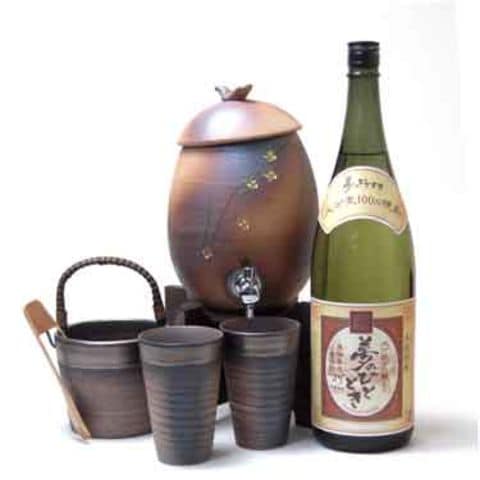 信楽焼・明山窯 焼酎サーバー 火色金小紋 2200cc 24,800円備前金彩焼酎ペアカップ大 6,300円備前金彩焼酎氷りいれ 6,300円手づくり竹トング 1,250円【じざけや限定】井上酒造 熟成麦焼酎 夢のひととき 25度 1800ml 3,307円合計41957円送料無料! 全国一律送料無料(沖縄、離島別途950円となります)プレゼントに安心 焼酎サーバー説明書付さらにラッピング無料! ラッピング必要時には、ご連絡ください♪