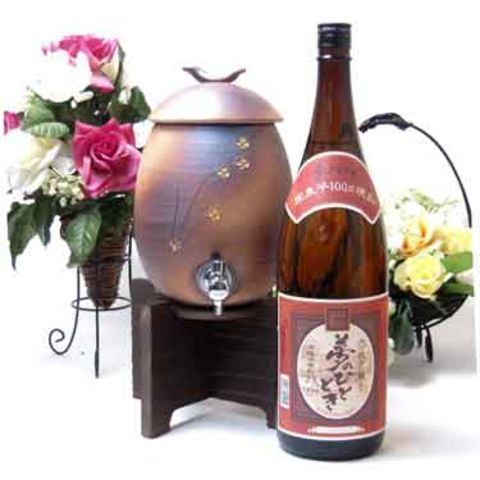 信楽焼・明山窯 焼酎サーバー 火色金小紋 2200cc(専用木台付き)+本格芋焼酎 夢のひととき1800ml