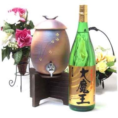 信楽焼・明山窯 焼酎サーバー 火色金小紋 2200cc(専用木台付き)+濱田酒造 黄麹仕込み芋焼酎 大魔王 1800ml