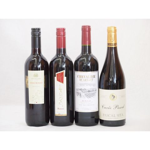 フランス×イタリア赤ワイン4本セット(コルテ デル ニッピオ ロッソ(イタリア) ブルーサ ロッソ(イタリア) シュバリエ・デュ・ルヴァン ルージュ(フランス) パスカルシータキュヴェルージュ(フランス)) 750ml×4本