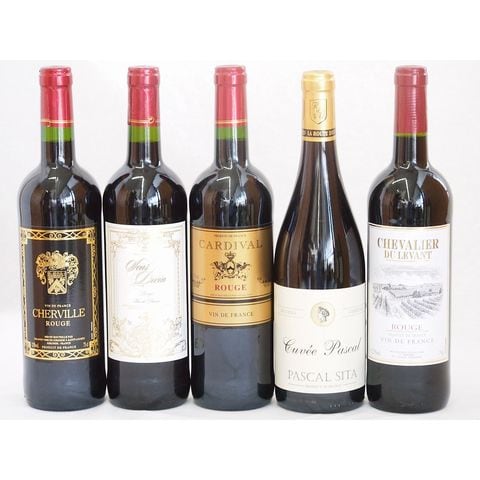フランス赤ワイン5本セット(シュバリエ・デュ・ルヴァン ルージュ パスカルシータキュヴェルージュ カルディヴァルルージュ シャルヴィーユ ルージュ サンディヴァン ルージュ) 750ml×5本