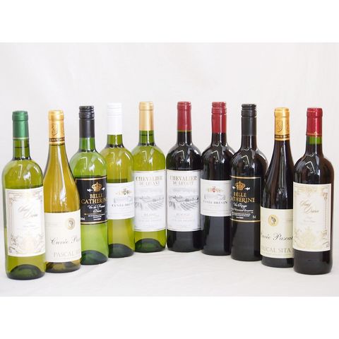 フランス赤白ワイン10本セット(シュバリエ・デュ・ルヴァン ルージュ キャベェブレヴァン ルージュ パスカルシータキュヴェルージュ ベル キャサリン ルージュ サンディヴァン ルージュ シュバリエ・デュ・ルヴァン ブラン キャベェブレヴァン ブラン パスカルシータキュヴェ ブラン ベル キャサリン ブラン サンディヴァン ブラン) 750ml×10本
