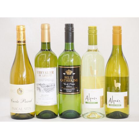 フランス×チリ白ワイン5本セット(アルパカ シャルドネ・セミヨン(チリ) アルパカ ソーヴィニヨン・ブラン(チリ) ベル キャサリン ブラン(フランス) シュバリエ・デュ・ルヴァン ブラン(フランス) パスカルシータキュヴェ ブラン(フランス)) 750
