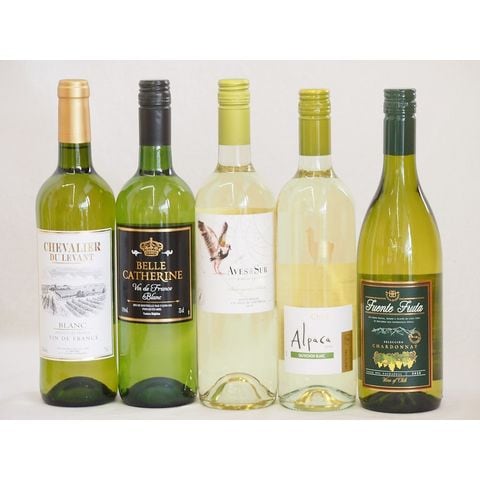 フランス×チリ白ワイン5本セット(フエンテフルータシャルドネ(チリ) デルスールソーヴィニヨン(チリ) アルパカ ソーヴィニヨン・ブラン(チリ) ベル キャサリン ブラン(フランス) シュバリエ・デュ・ルヴァン ブラン(フランス)) 750ml×5本