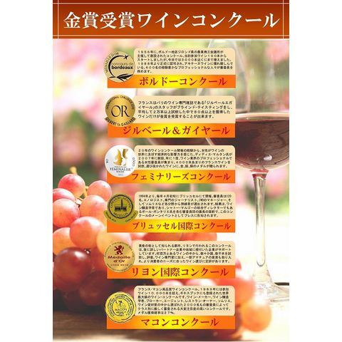 ※ヨーロッパには、味わいを競うコンクールが数多くあり、出展されるワインは生産者が丹精込めた自信作ばかりです。そんなワインを審査するのは、ソムリエやジャーナリストなど、ワインのプロフェッショナルです。その中から見事に、金賞を受賞したワインを詰め合わせです。
