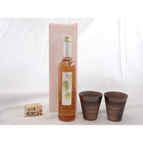 贈り物ギフトセット 榮田 清峰作直筆メッセージ木片付ペアカップセット(陶芸作家安藤嘉規作 日本製萬古焼き) 沢姜の香り・爽快な味わい!百助 生姜梅酒 500ml井上酒造 (大分県)