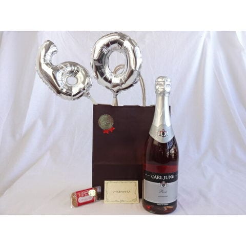 還暦シルバーバルーン60贈り物セット 脱アルコールワインロゼ 750ml(ドイツ) メッセージカード付
