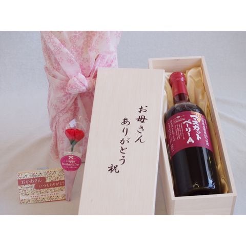 母の日 お母さんありがとう木箱セット 山梨県産葡萄100%使用マスカット・ベーリーA 赤ワイン (山梨県) 720ml 母の日カードとカーネイション付