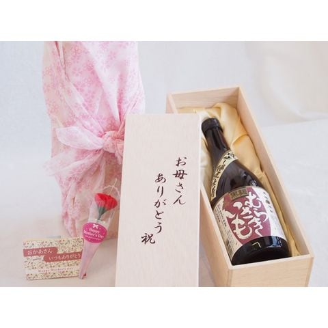 母の日 お母さんありがとう木箱セット 堤酒造 本格芋焼酎 黒麹むらさきいも (熊本県) 720ml 母の日カードとカーネイション付