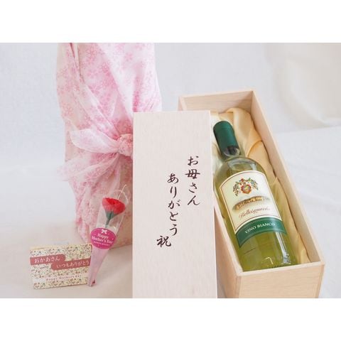 母の日 お母さんありがとう木箱セット イタリア白ワインbellosgurdo VINO BLANCO 750ml 母の日カードとカーネイション付