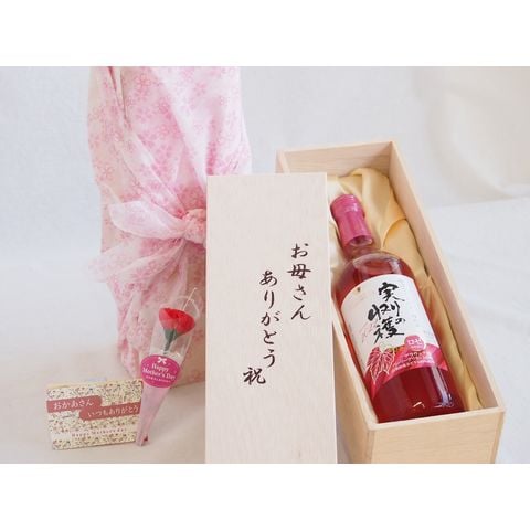 母の日 お母さんありがとう木箱セット 実りの収穫ロゼワイン (山梨県) 720ml 母の日カードとカーネイション付