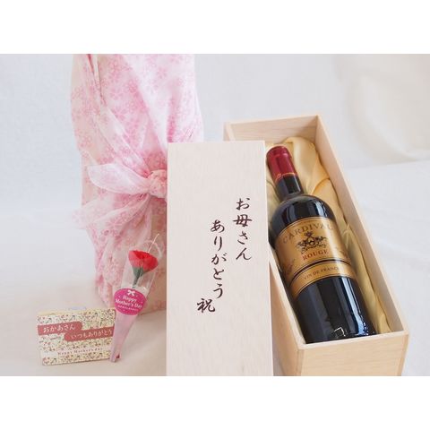 母の日 お母さんありがとう木箱セット カルディヴァル・ルージュ 赤ワイン (フランス) 750ml 母の日カードとカーネイション付