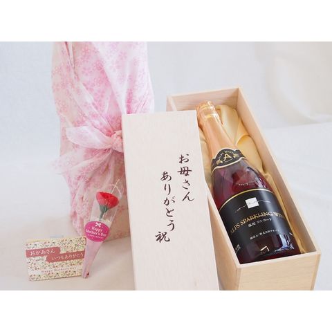母の日 お母さんありがとう木箱セット 塩尻コンコードスパークリングワインロゼやや甘口 (長野県) 720ml 母の日カードとカーネイション付