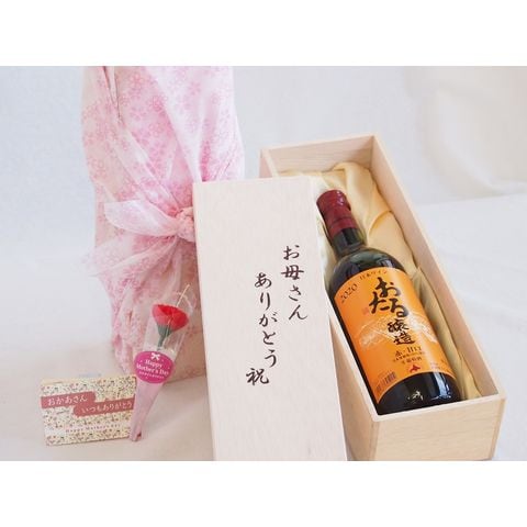 母の日 お母さんありがとう木箱セット 日本産葡萄100%使用おたる醸造赤ワイン甘口 (北海道) 720ml 母の日カードとカーネイション付