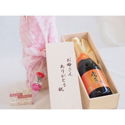 母の日 お母さんありがとう木箱セット おたる醸造キャンベルアーリスパークリン赤ワインやや甘口 (北海道) 720ml 母の日カードとカーネイション付