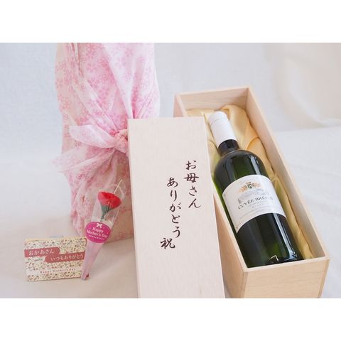 母の日 お母さんありがとう木箱セット キュヴェ・ブレヴァン白ワインミディアムやや辛口 (フランス) 750ml 母の日カードとカーネイション付