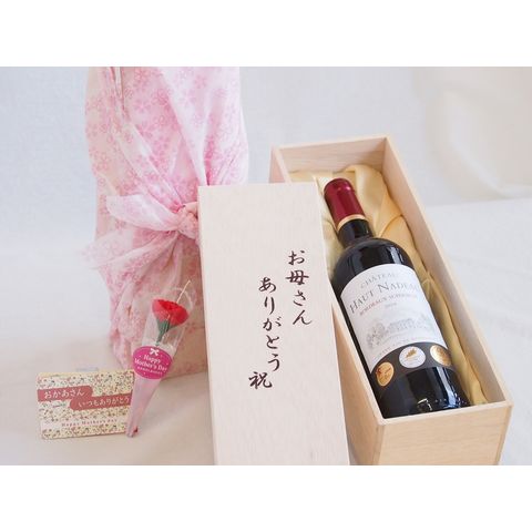 母の日 お母さんありがとう木箱セット フランスボルドー金賞赤ワイン 750ml 母の日カードとカーネイション付