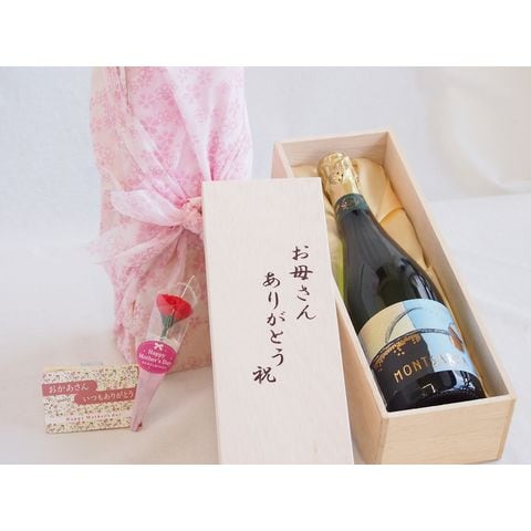 母の日 お母さんありがとう木箱セット モンサラカバセミ・セックスパークリング白ワインやや甘口 (スペイン) 750ml 母の日カードとカーネイション付