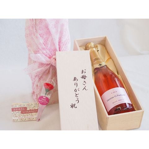 母の日 お母さんありがとう木箱セット エレタット・エル・パドゥルエルブリュットロゼワイン (スペイン) 750ml 母の日カードとカーネイション付