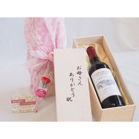 母の日 お母さんありがとう木箱セット シュバリエ・デュ・ルヴァン赤ワインライトボディ (フランス) 750ml 母の日カードとカーネイション付