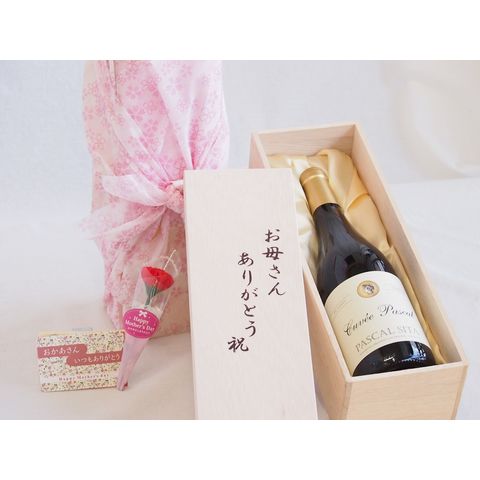 母の日 お母さんありがとう木箱セット パスカル・シータキュヴェ・ルージュ赤ワインミディアムボディ (フランス) 750ml 母の日カードとカーネイション付