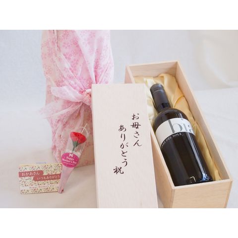 母の日 お母さんありがとう木箱セット テレデルソールビアンコ白ワイン (イタリア) 750ml 母の日カードとカーネイション付