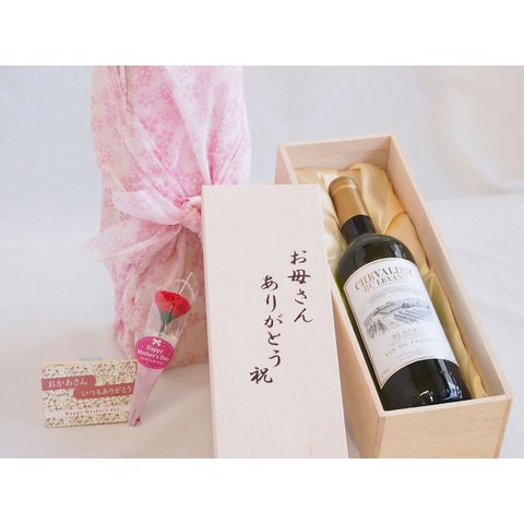 母の日 お母さんありがとう木箱セット シュヴァリエ・デュ・ルヴァン白ワインやや辛口 (フランス) 750ml 母の日カードとカーネイション付