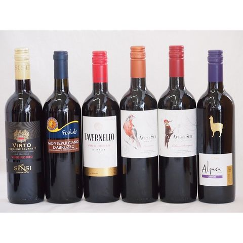 イタリア×チリ赤ワイン6本セット(デルスールカベルネ モンテプルチアーノ ダブルッツオ センシィヴィルトロッソ タヴェルネッロ ロッソ デルスールカルメネール アルパカカルメネール) 750ml×6本