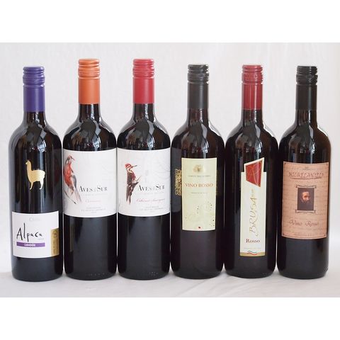 イタリア×チリ赤ワイン6本セット(コルテ デル ニッピオ ロッソ ブルーサ ロッソ ミケランジャロ ロッソ デルスールカベルネ デルスールカルメネール アルパカカルメネール) 750ml×6本