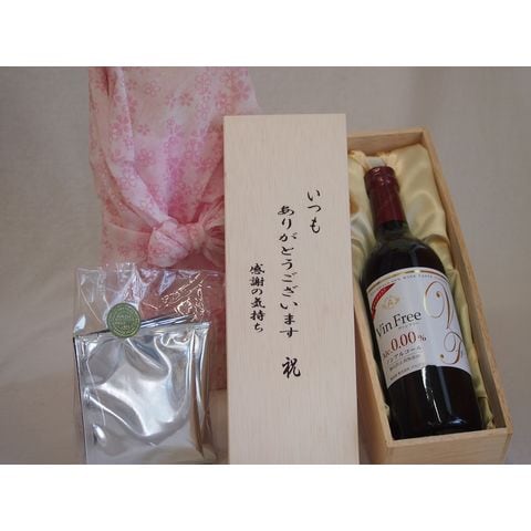 贈り物いつもありがとう木箱と珈琲ドリップセット挽き立て珈琲(ドリップパック5パック)ノンアルコールワインヴァンフリー赤 (長野県) 720ml