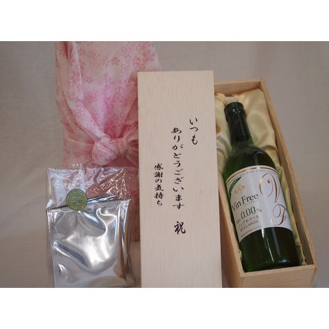 贈り物いつもありがとう木箱と珈琲ドリップセット挽き立て珈琲(ドリップパック5パック)ノンアルコールワインヴァンフリー白 (長野県) 500ml