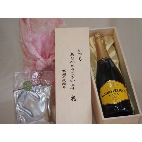贈り物いつもありがとう木箱と珈琲ドリップセット挽き立て珈琲(ドリップパック5パック)モナステリオーロカバブルットNVスパークリング白ワイン辛口 (スペイン) 750ml