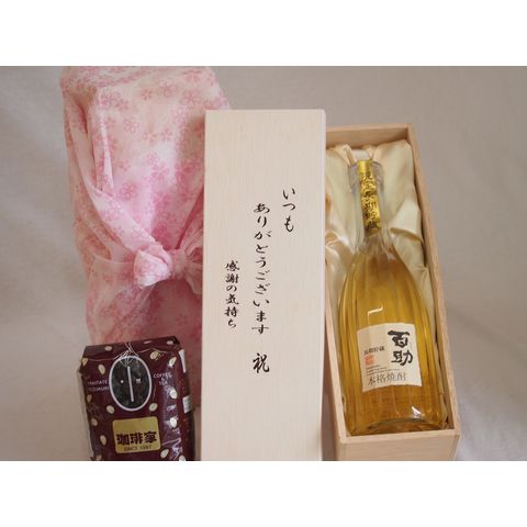 贈り物いつもありがとう木箱と珈琲豆セットオススメ珈琲豆(特注ブレンド200g)井上酒造 長期貯蔵本格麦焼酎 百助 (大分県)l 720ml