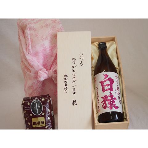 贈り物いつもありがとう木箱と珈琲豆セットオススメ珈琲豆(特注ブレンド200g)小正醸造 本格麦焼酎 ワイン酵母使用白猿 (鹿児島県) 720ml