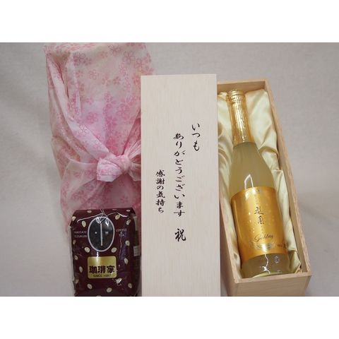 贈り物いつもありがとう木箱と珈琲豆セットオススメ珈琲豆(特注ブレンド200g)老松酒造 梨園スパークリング (大分県) 500ml