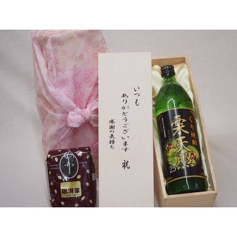 贈り物いつもありがとう木箱と珈琲豆セットオススメ珈琲豆(特注ブレンド200g)神楽酒造 くり焼酎 栗天照 (宮崎県) 900ml