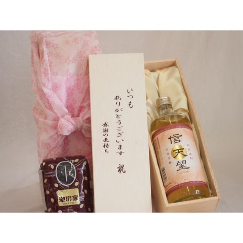 贈り物いつもありがとう木箱と珈琲豆セットオススメ珈琲豆(特注ブレンド200g)深野酒造 本格麦焼酎 信天望麦芽芳醇23° (熊本県) 720ml