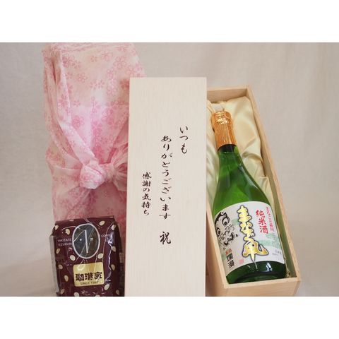贈り物いつもありがとう木箱と珈琲豆セットオススメ珈琲豆(特注ブレンド200g)秋田名醸 純米まなぐ凧 (秋田県) 720ml