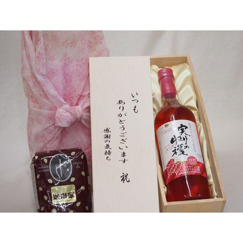贈り物いつもありがとう木箱と珈琲豆セットオススメ珈琲豆(特注ブレンド200g)実りの収穫ロゼワイン (山梨県) 720ml